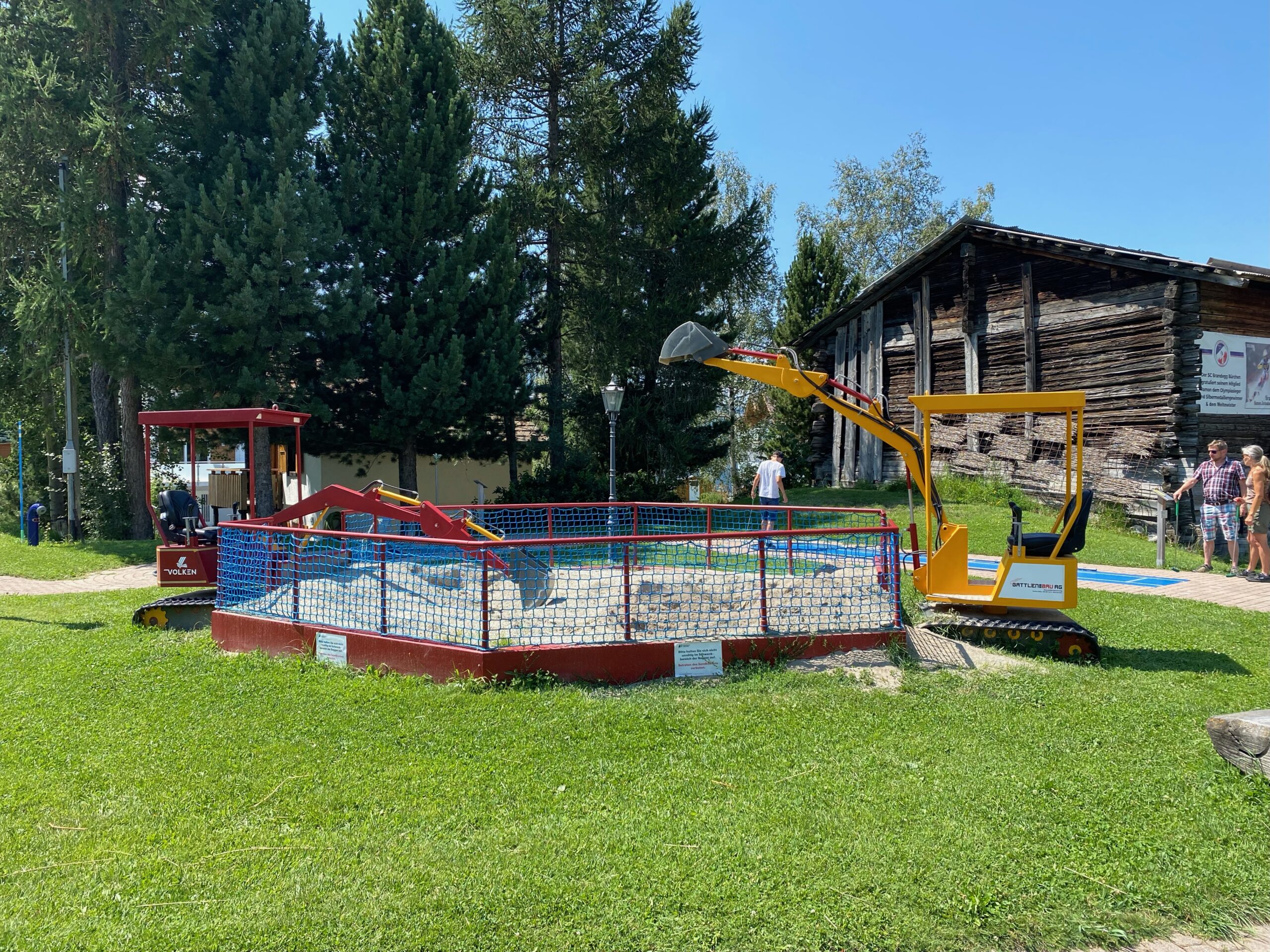 Werde zum Baumeister! Bei der Minigolfanlage in Bürchen stehen zwei Spielbagger und warten auf junge Bauarbeiter. Die Spielbagger können selbständig gegen den Einwurf von 2 Franken benützt werden.