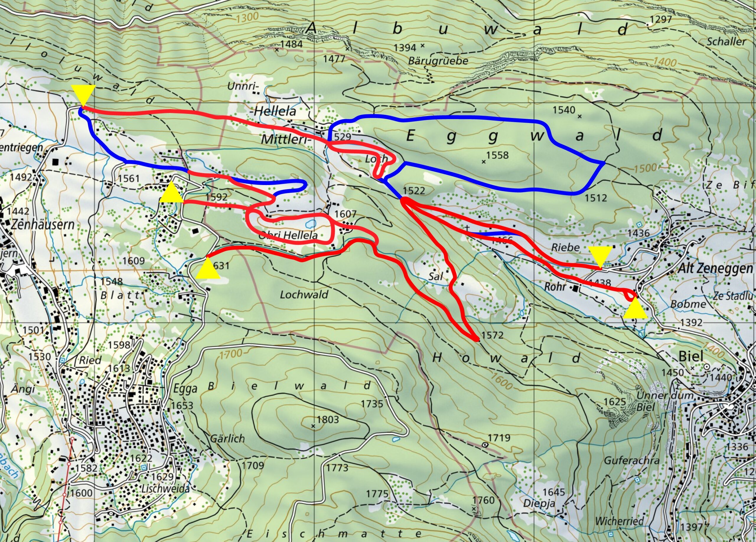 Einstiegspunkte Start Eichhörnchenweg in Bürchen | Blatt in Bürchen (Abzw. Zeneggen) | Rohr (Zeneggen)
